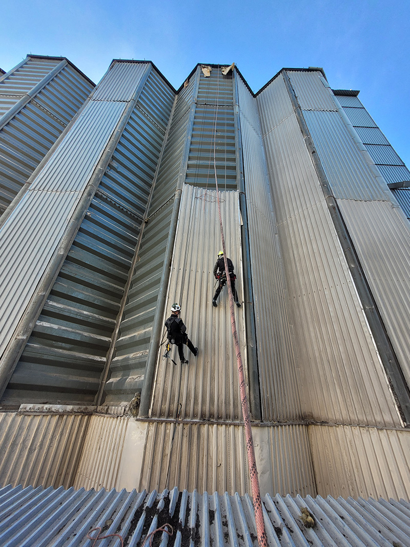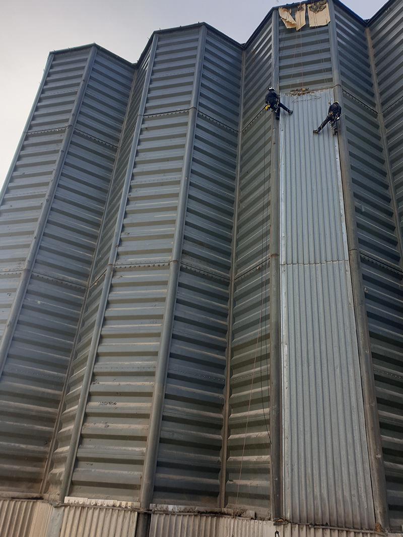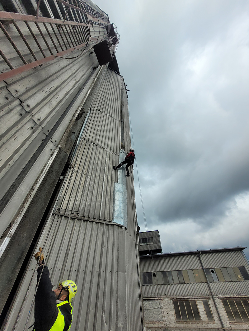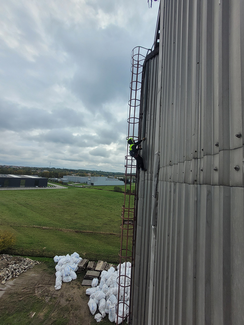 - przygotowanie stanowisk linowych na dachu silosu,