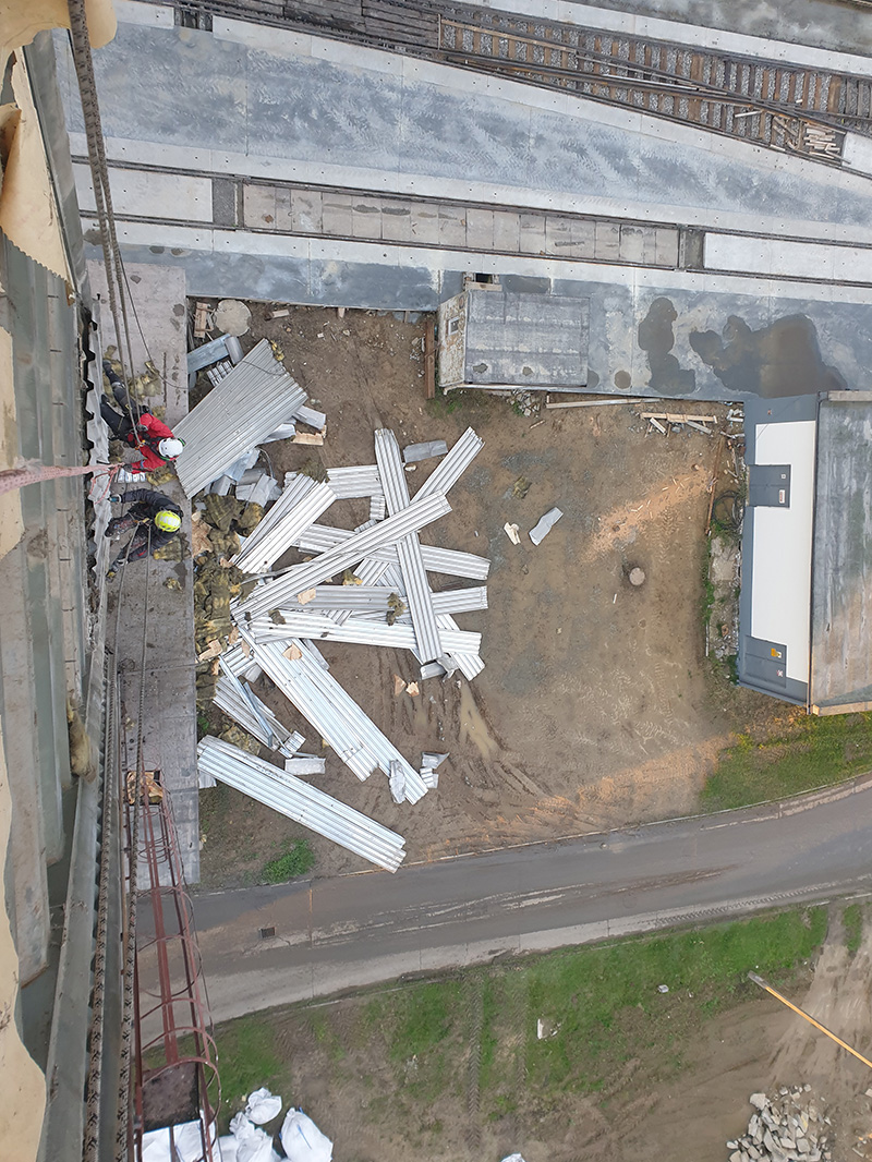 - demontaż starej blachy aluminiowej i stalowej w arkuszach na silosie o wysokości 30m,