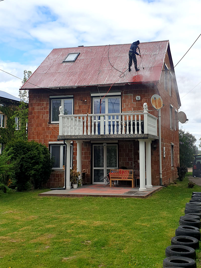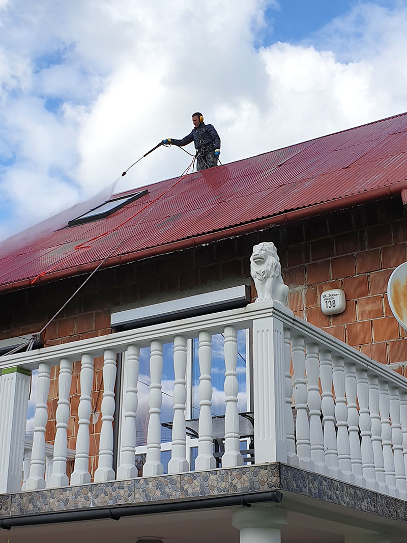 - spłukanie, odtłuszczenie i ponowne umycie dachu,